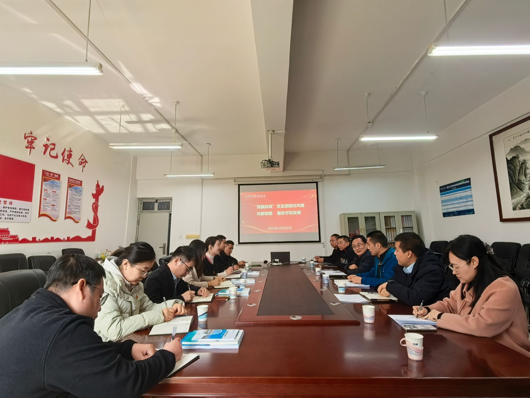 10-24为落实学校“双融双促”机关党支部与学院党支部结对共建行动,按照“难题共解,服务事业发展”的要求,10月22日在惟志楼407,...