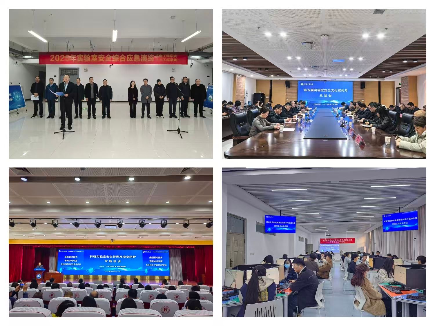 长期以来,学校始终将实验室安全工作摆在重要位置,构建起实验室管理处牵头抓总、多部门协同联动、各学院精准落实的完善的实验室安全管理工作体系。校长办公室(安全生产办公室)、学生工作部、保卫处、研究生院等实验室安全工作组成员单位紧密协作、同向发力,开展常态化实验室安全检查、教育培训以及应急演练等活动。生物工程学院、机电工程学院、粮食和物资储备学院以及土木工程学院等单位主动担当,精心承办举办特色活动,构建起上下贯通、全员参与、齐抓共管的实验室安全治理新格局。