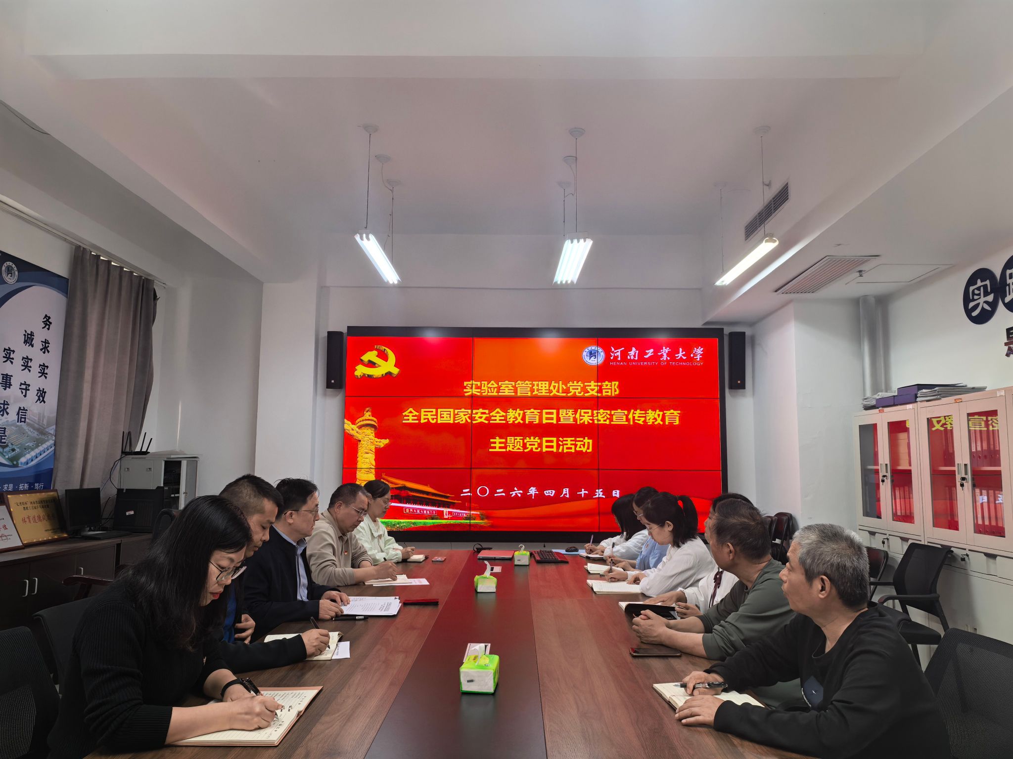 为深入贯彻落实总体国家安全观,切实增强党员干部的国家安全意识与保密意识,压实实验室安全管理以及实训教学的安全责任,根据机关党委《关于开展“全民国家安全教育日暨保密宣传教育”主题党日活动的通知》要求,在4月15日第11个全民国家安全教育日当天,实验室管理处党支部以“统筹发展和安全,护航‘十五五’新征程”为主题,组织开展了国家安全教育主题党日活动。党日活动由党支部书记刘国锋主持。